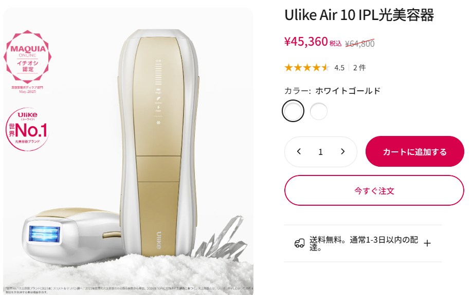 冷却機能があって痛みがなく、光もすごく強い、そんなバランスの良い機種はUlike Air10のような脱毛器です。