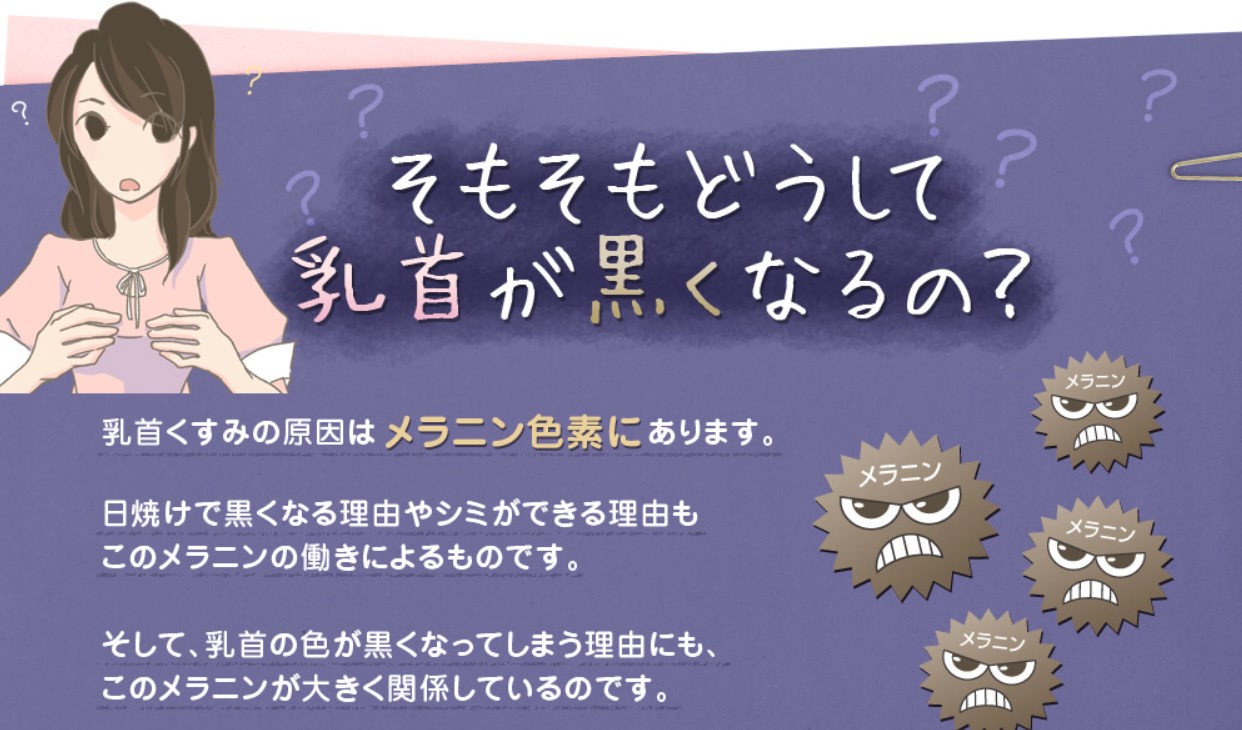 乳首の黒ずみはメラニン色素の蓄積が原因と言われています