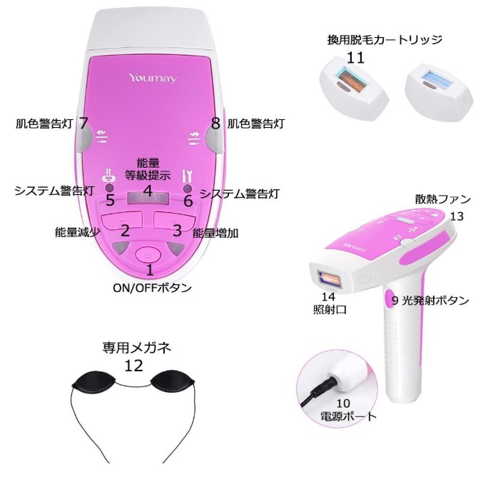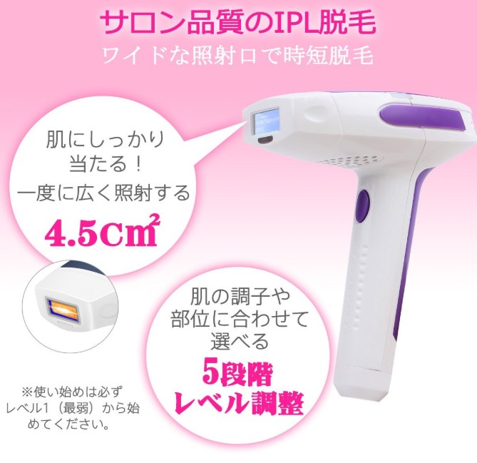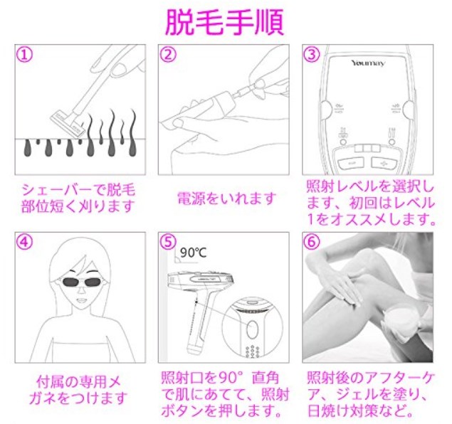 しかし、慣れてくるとレベル5でも痛いとは感じなくなります。痛いという思い込みで痛く感じてましたが、お試しで使ったケノン、脱毛ラボホームエディションのレベル5と比べればこのYoumayのIPL光脱毛器の照射は非常に弱いと感じます。