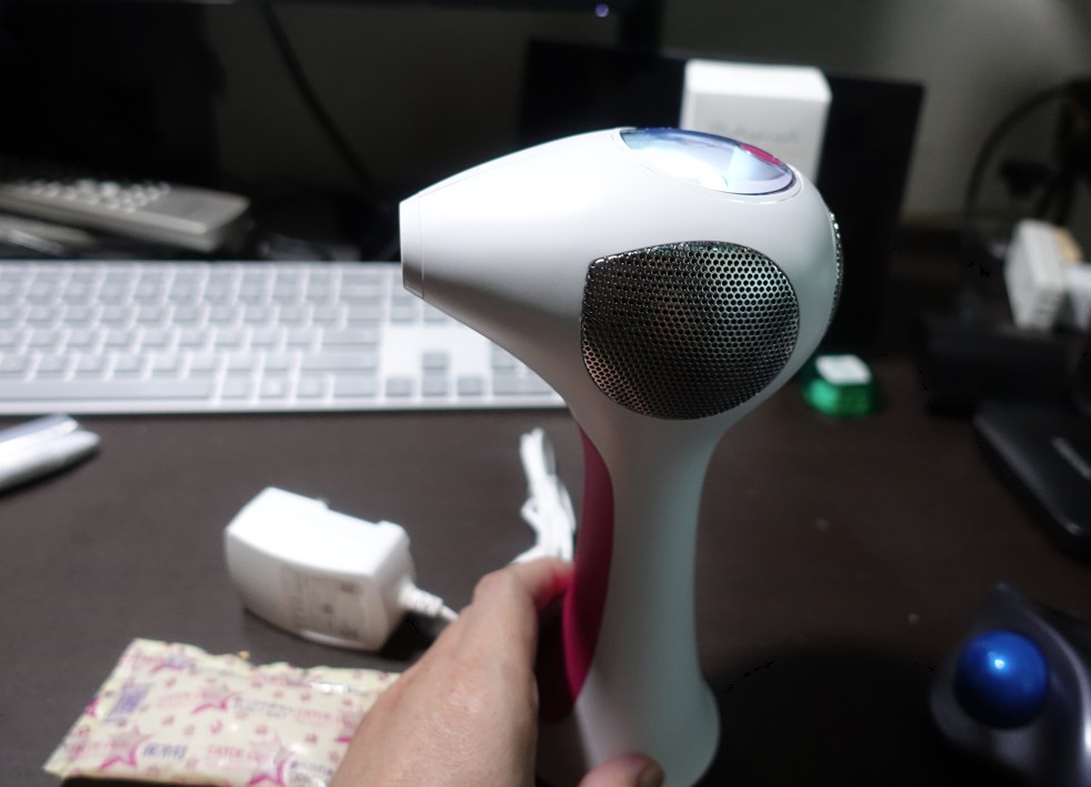 そのため他の脱毛機みたいに、1発1発自分でボタン押して発光しなくていいから、連続照射が思いの外スムーズです。