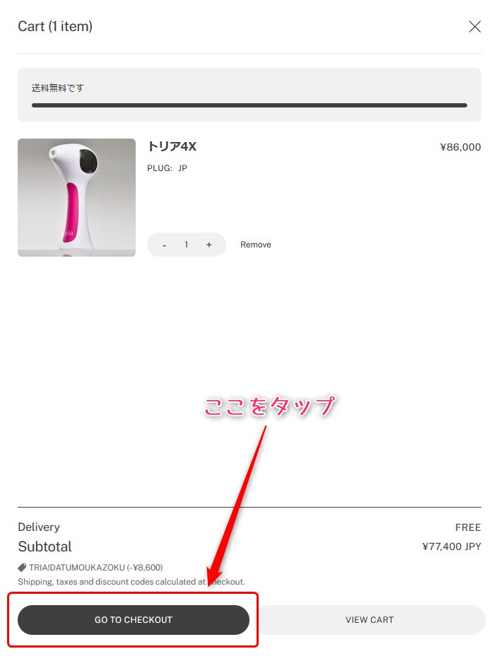 GO TO CHECK OUT へ進む