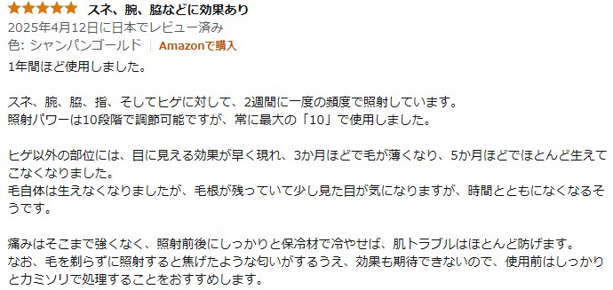 本当に安心して長く使えます。(←家庭用脱毛器はこれが一番大事